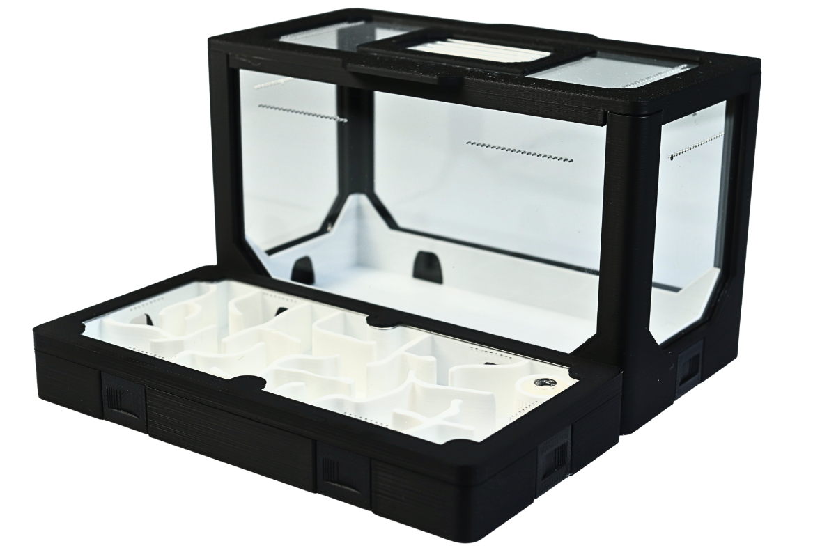 Ant-Keeping Set No. 2 from the Modular BlackAnt series is an ideal solution for anyone who wants to start ant keeping in a safe, aesthetic, and fully modular way. The set combines a compact feeding arena with a functional Nest M, designed in the characteristic BlackAnt style: black housing, white tunnels, durable 3D printing, and clear plexiglass.