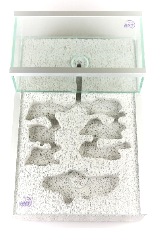 The formicarium has a chamber for hydration in the front part of the formicarium and 6 chambers in the form of labyrinths for colonization by ants.