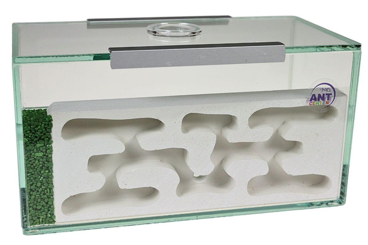 It can be successfully colonized by all available types of ant colonies. The design has been thought out so that the owner could easily keep formicarium clean. At the same time it also provides a microclimate similar to the natural. The materials used to produce formicarium are harmless to the ants and to the environment. The gypsum nest perfectly maintains the necessary moisture for the rasing of the colony.