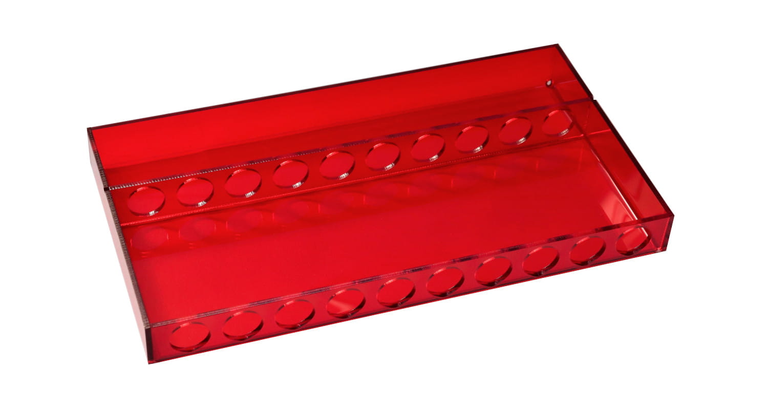 Czerwony kolor chroni przed działaniem ultrafioletu oraz powoduje, że materiał z którego jest wykonany stojak nie żółknie.
